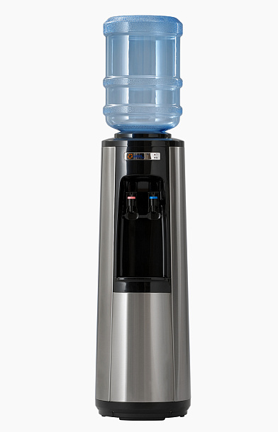 Элегантный черный кулер с напольным типом установки. Устройство отлично впишется в любое офисное пространство за счет изящного дизайна. Дополняется удобным краном с функцией нажима кружкой. Модель цилиндрической формы, выполнена из нержавеющей стали.