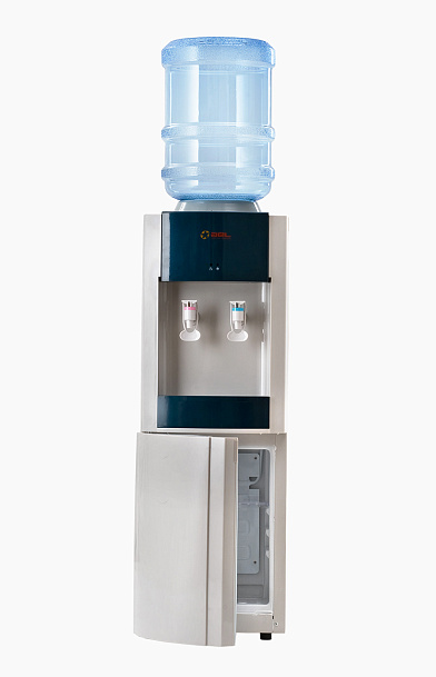 Напольный компрессорный кулер для воды в классическом корпусе со вставками темно-зеленого цвета. Оснащен холодильником для хранения напитков и продуктов на 20 литров (≅260х210х360 мм). Комфортной эксплуатации способствует наличие кранов с функцией "нажим кружкой". Обеспечивает охлаждение 2 литров и нагрев 5 литров воды в час. Корпус состоит из легкосменных панелей, изготовленных из высококачественного пластика. При необходимости нагрев и охлаждение воды можно отключить с помощью тумблеров, расположенных на задней панели аппарата.
