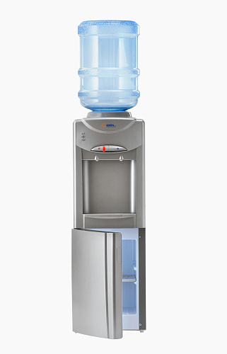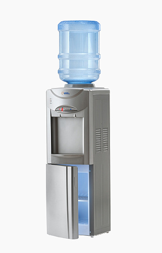 Новая модель кулера со шкафчиком. Современный дизайн представлен в стильном серебристом корпусе. Данное устройство отлично подходит для оснащения небольшого офисного пространства за счет узкого корпуса. Комфортной эксплуатации способствует возможность удобного нажима рукой специальной кнопки-клавиши. Дополняется удобным шкафчиком на 12 л и надежной защитой крана для горячей воды.