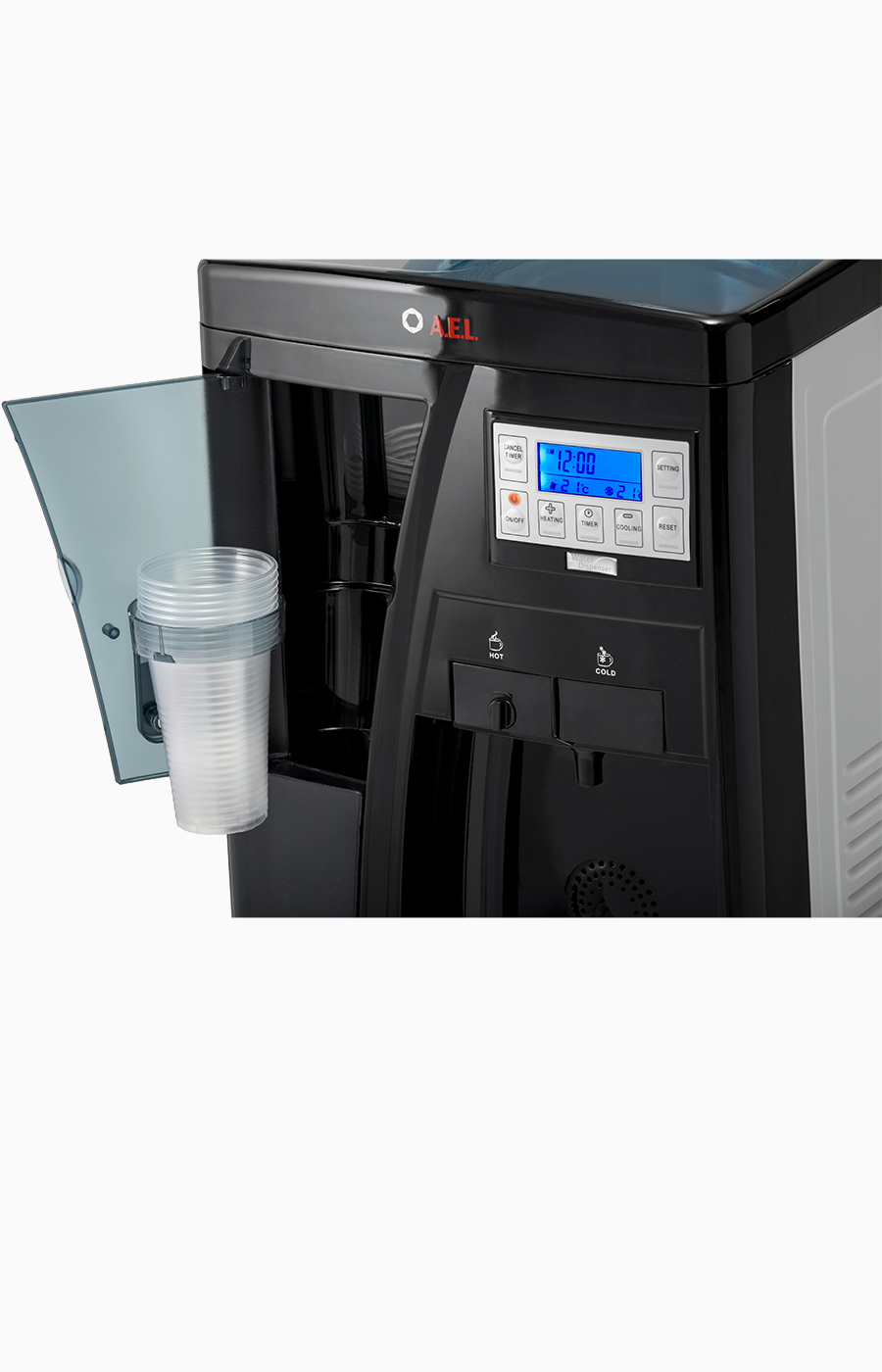 Многофункциональный дисплей позволяет контролировать и настраивать функции кулера. Подача воды нужной температуры осуществляется нажатием соответствующей клавиши.
