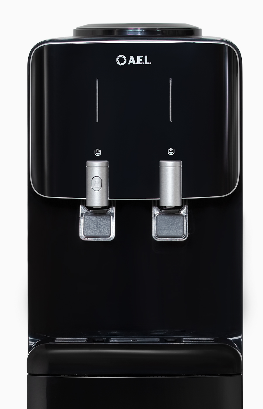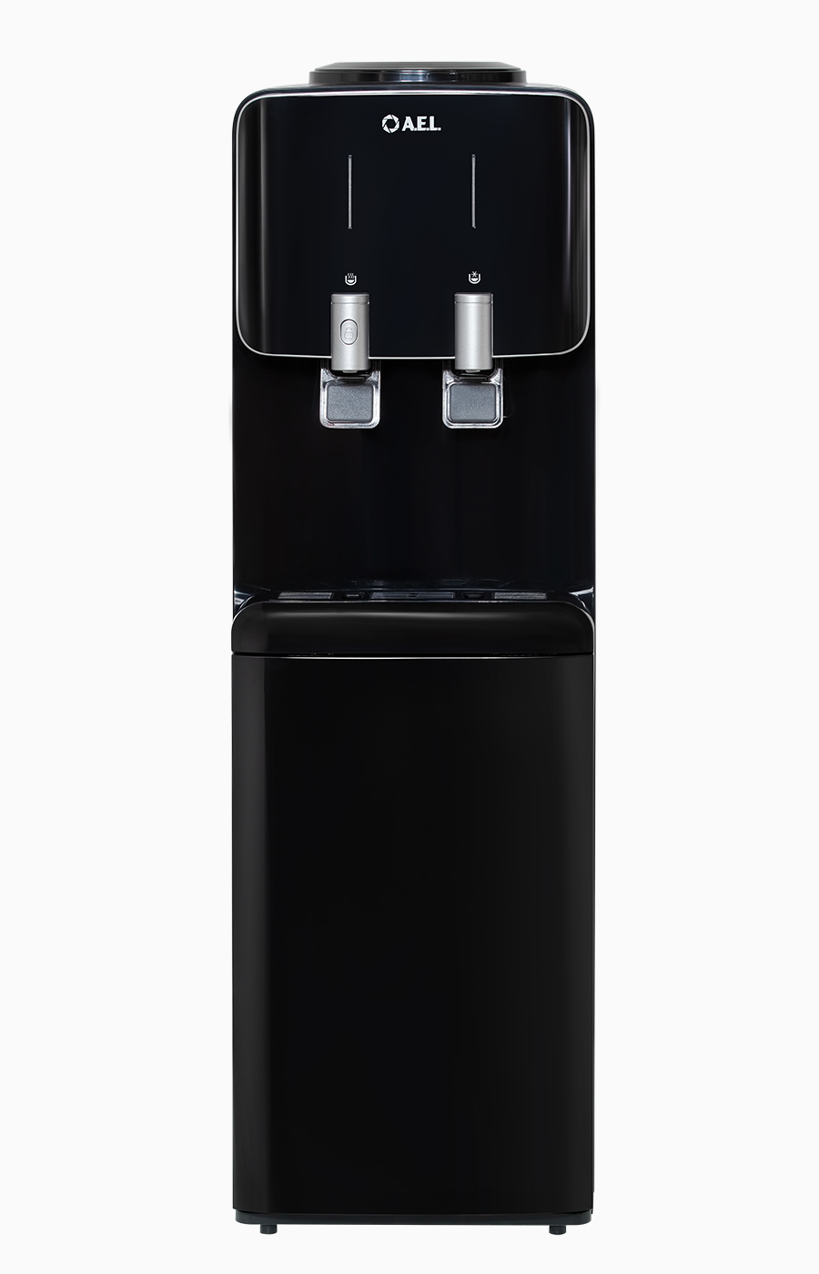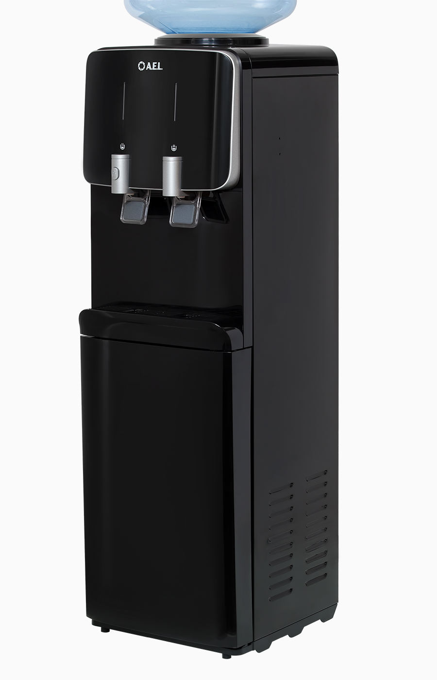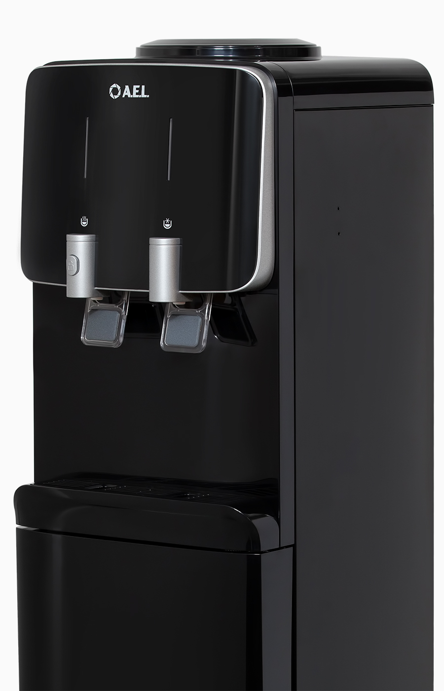 Новинка. Одно из лучших решений в своем классе по соотношению цены и качества. Напольный кулер с компрессорным охлаждением черного цвета и верхней загрузкой бутыли. Удобные краники "нажим кружкой" серебряного цвета с защитой от случайного нажатия горячей воды.
