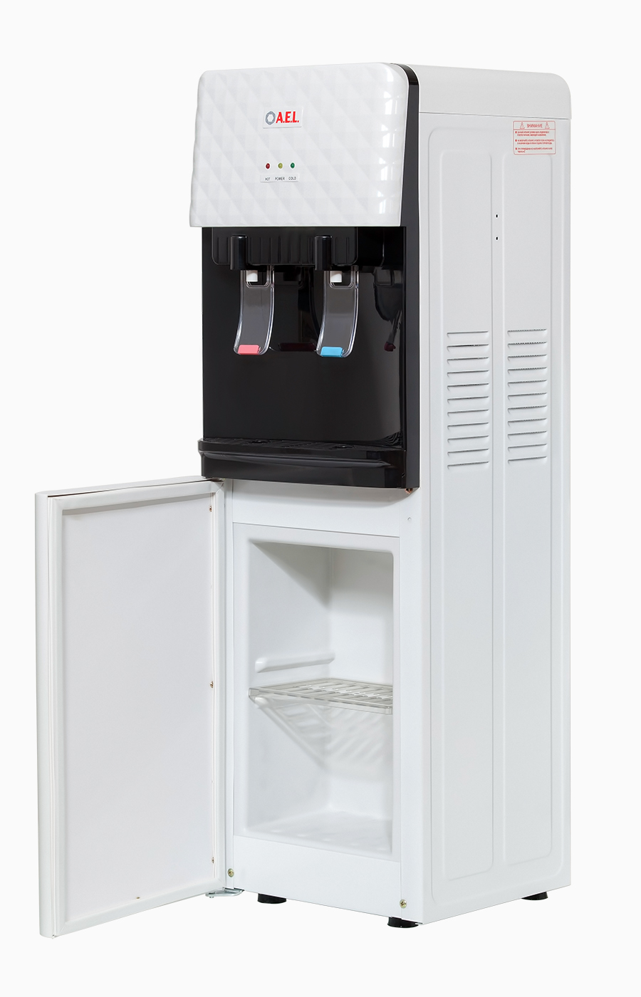 Новинка в ассортиментной линейке АЕЛ - напольный кулер с компрессорным охлаждением и шкафчиком для продуктов. Интересный дизайн на лицевой панели, удобные краны "нажим чашкой" и малые габариты этого аппарата эргономично впишутся в Ваш офис.