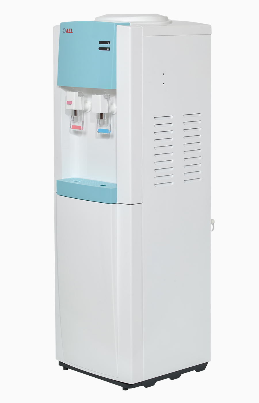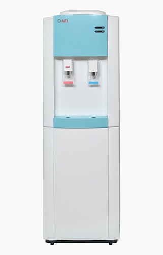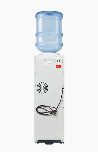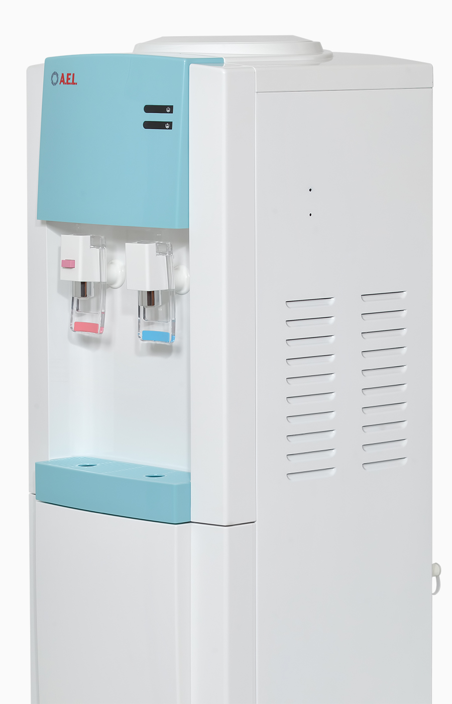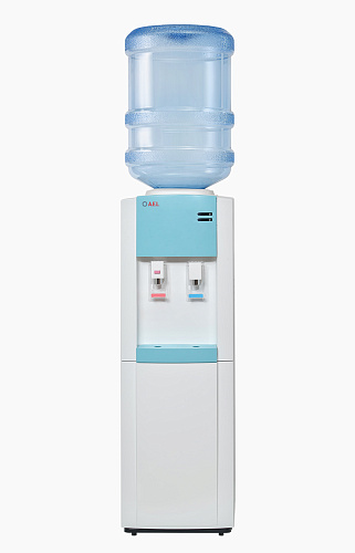 Новинка. Напольный кулер с электронным охлаждением белого цвета с бирюзовой вставкой на лицевой панели и лотком. Верхняя загрузка бутыли. Удобные краники "нажим кружкой" с внутренней резьбой, которые при необходимости легко и быстро заменить. Кран горячей воды оснащен кнопкой-защитой от случайного нажатия.