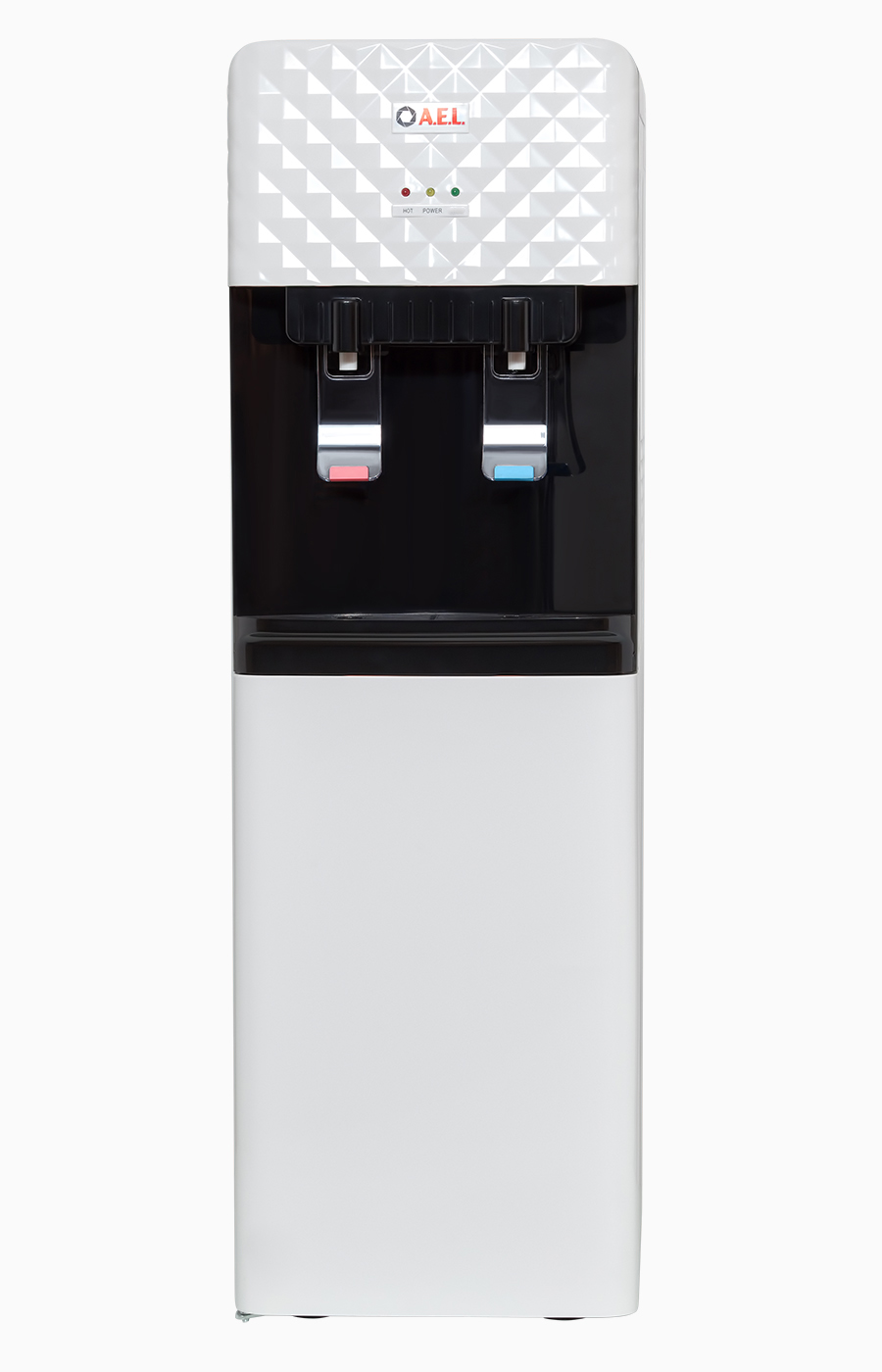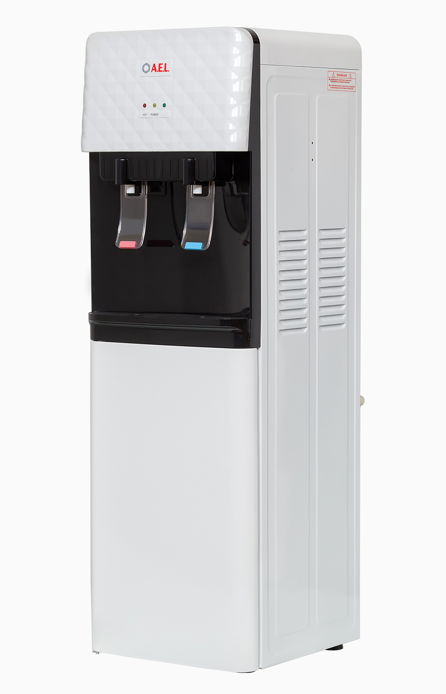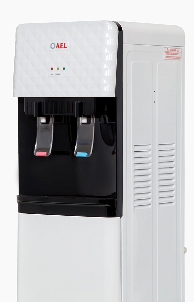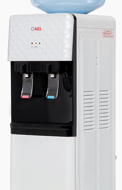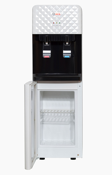 Представляем новинку в ассортименте АЕЛ недорогой напольный кулер для воды с верхней загрузкой бутыли в корпусе белого цвета с черными вставками. Модель без охлаждения, с нагревом 5л/ч и шкафчиком для продуктов. Интересный дизайн на лицевой панели, удобные краны "нажим чашкой" и малые габариты этого аппарата эргономично впишутся в Ваш офис.