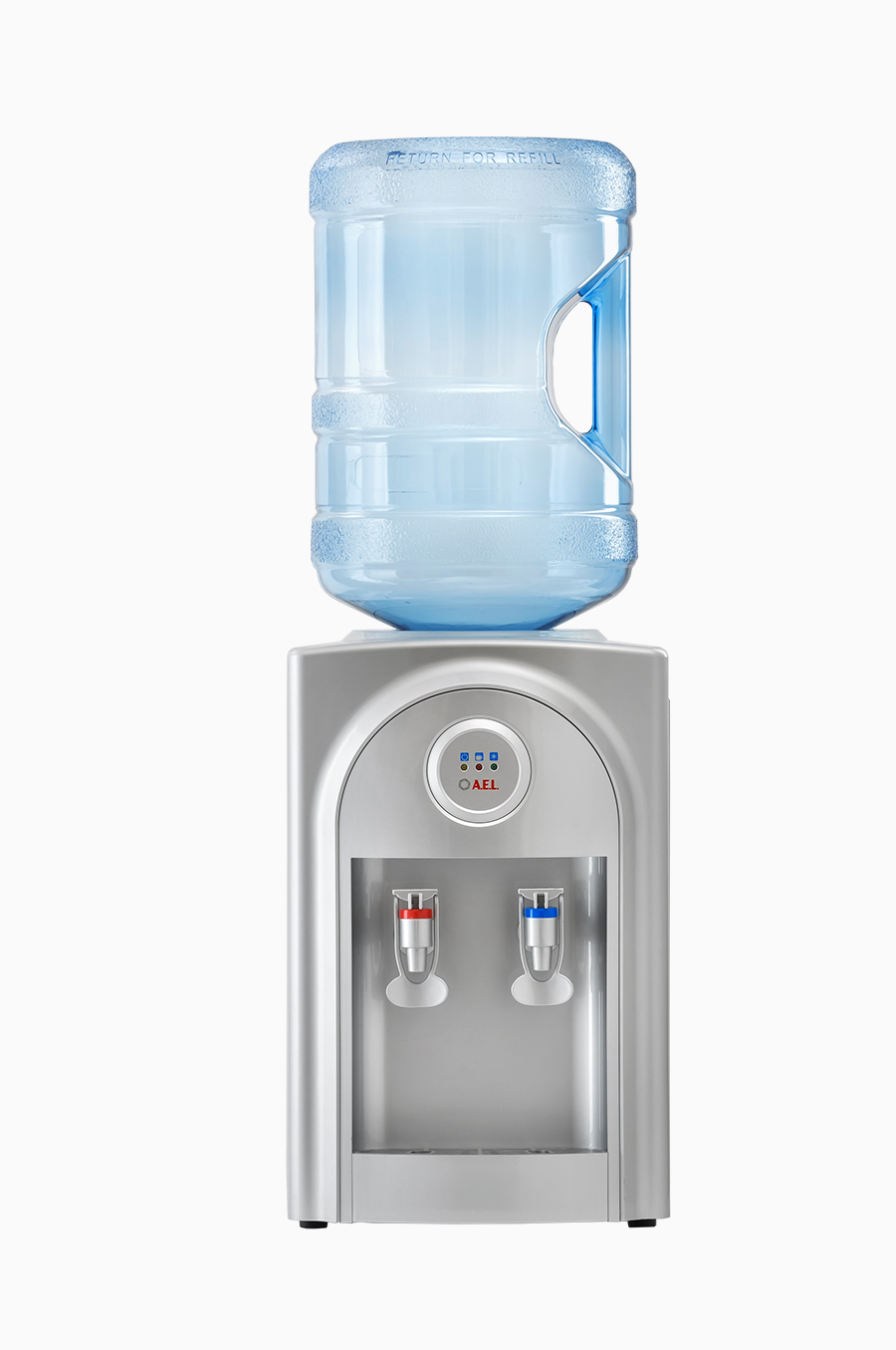 Настольный кулер серебристого цвета. Удобен и прост в использовании. Достаточно легкого нажатия кружкой на один их двух кранов для активации подачи воды соответствующей температуры. Оснащен кранами "нажим чашкой". Охлаждение и нагрев воды можно отключить с помощью тумблеров на задней панели кулера. Световая индикация на корпусе сообщит о работе устройства и процессе нагрева воды.