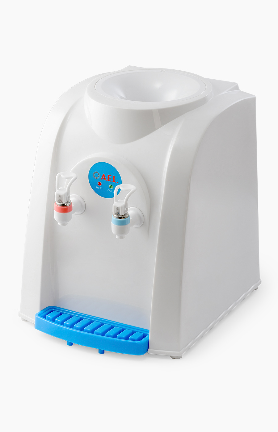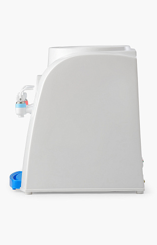 Настольный кулер для воды с верхней загрузкой бутыли без функции охлаждения. Нагревательный элемент в аппарате мощностью 500 Вт позволяет за час получить до 5 л горячей (90-95 градусов) воды. Имеет компактные размеры, благодаря чему легко устанавливается на стол или тумбочку не загромождая пространство. Оснащен двумя механическими кранами типа "нажим рукой" для подачи горячей воды и воды комнатной температуры. Корпус изготовлен из высококачественного пищевого пластика. Кулер подходит как для домашнего, так и для офисного использования, на предприятиях и учреждениях. Расстояние от краника до лотка 15см.