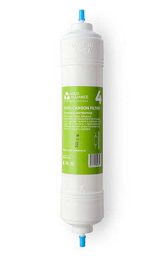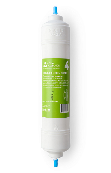 Угольный постфильтр. Поглощает хлор, вредные органические вещества (пестициды и пр.), удаляет запахи и улучшает вкус воды. Напонитель-прессованный активированный уголь из скорлупы кокоса с ионами серебра.