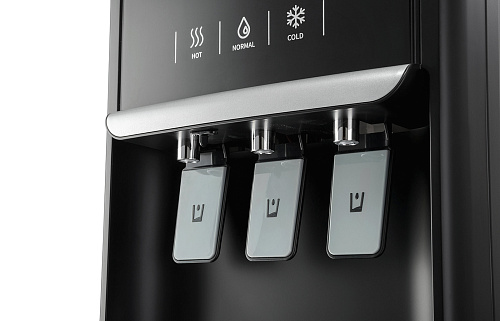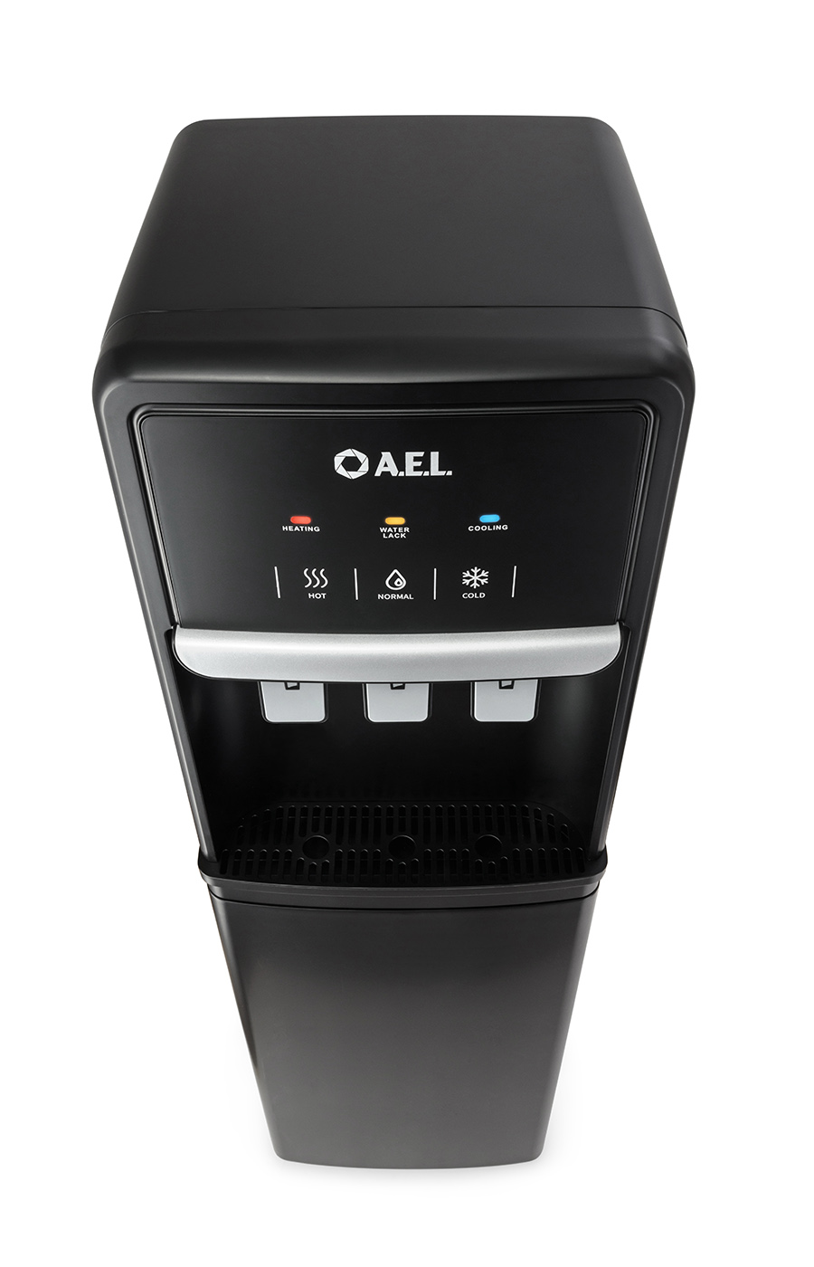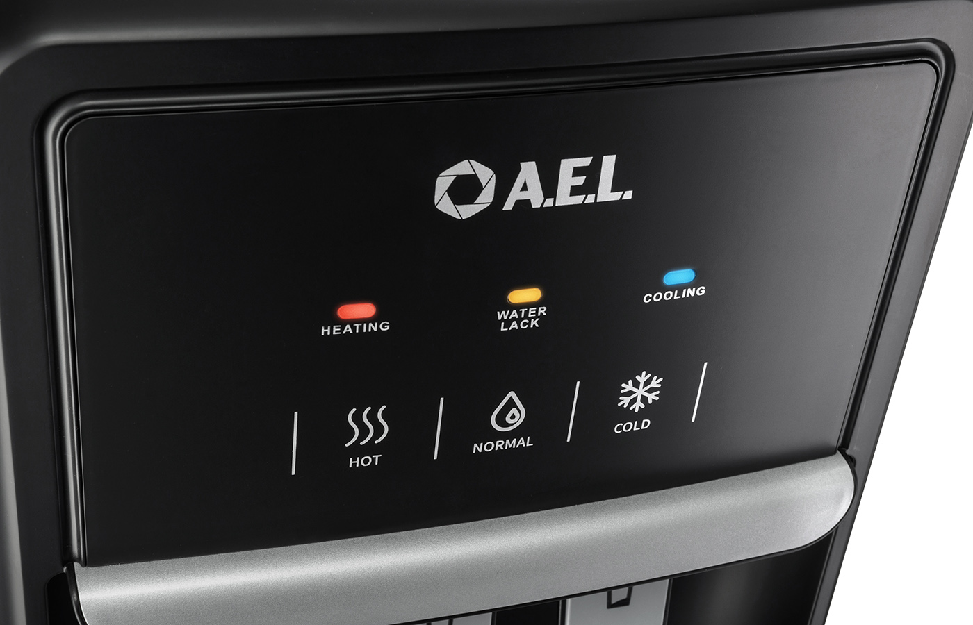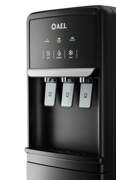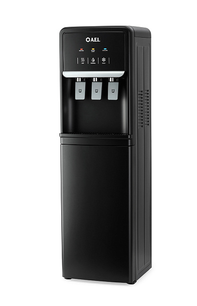 Кулер для воды LD-AEL-815a black с нижней загрузкой бутыли и с электронным охлаждением. Три крана нажим чашкой с защитой от случайного нажатия на горячей воде. Горячая/прохладная/холодная вода на выходе. В комплект входит силиконовая трубка забора воды, которая находится внутри нижнего отсека, позволяет полностью набрать всю воду из бутыли.
