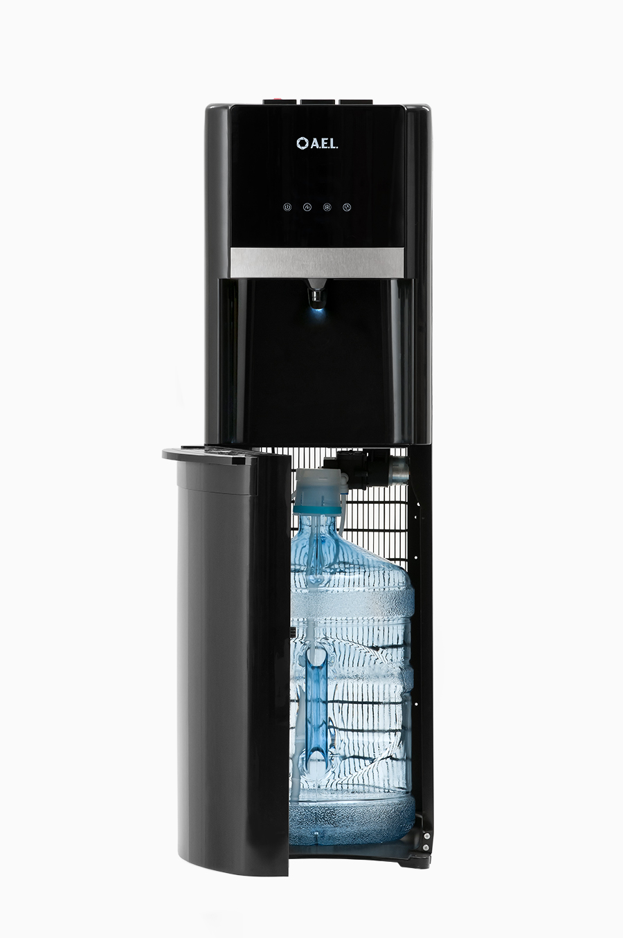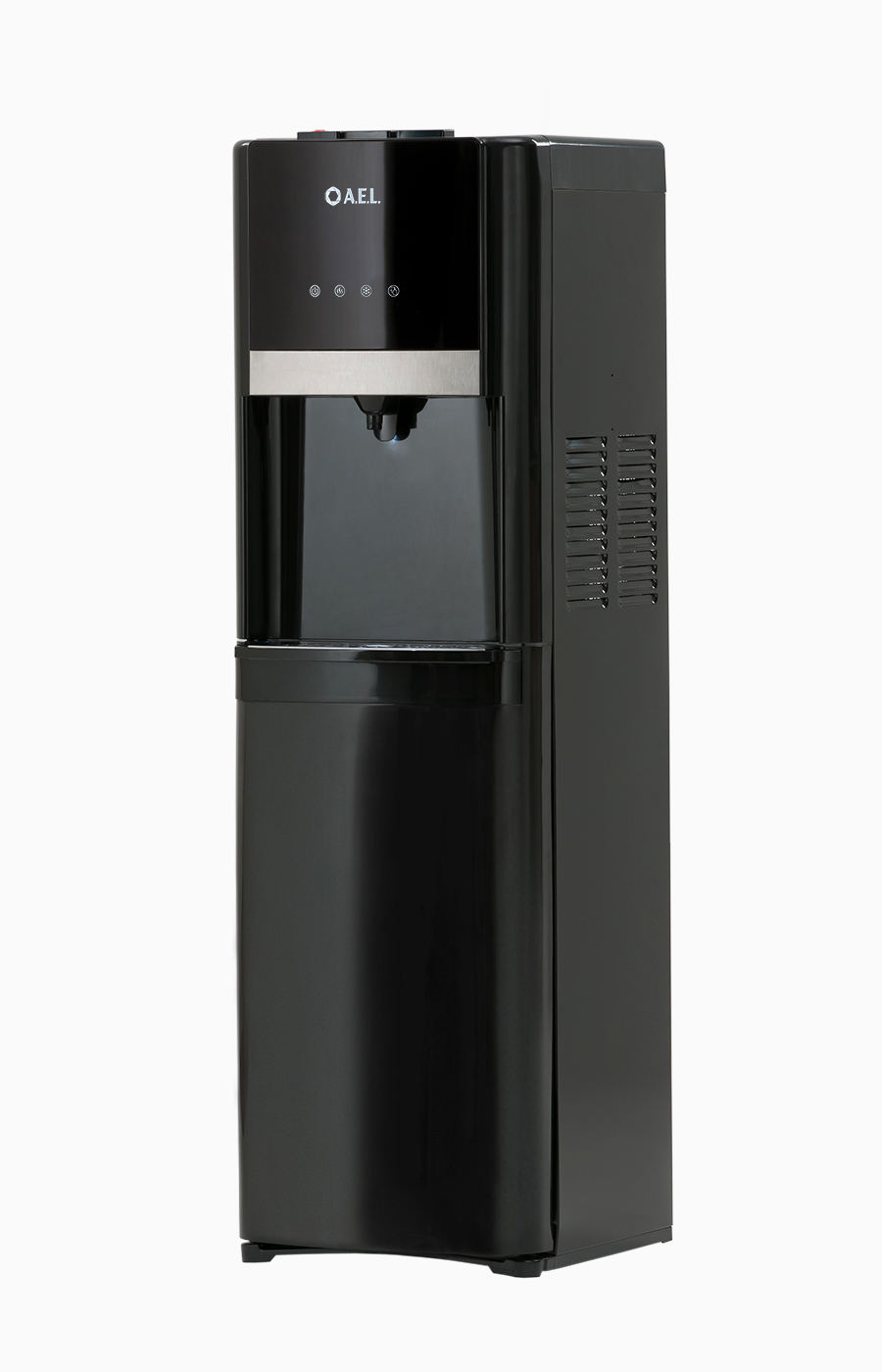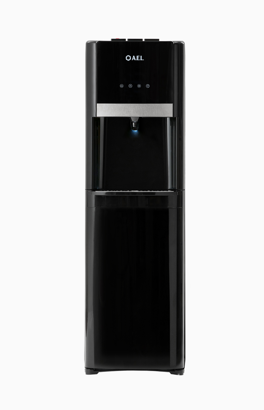 Кулер будет отлично смотреться в интерьере благодаря стильному дизайну, подсветке и нижней загрузке бутыли, закрывающейся дверцей. Снабжен 3-мя кнопками для воды холодной, горячей и комнатной температуры. Такое решение помогает экономить электроэнергию. Цвет: черный глянец.В процессе эксплуатации аппарата в тот момент, когда вода в бутыли закончилась, на панели индикации загорится индикатор наличия воды в бутыли. Это символизирует о том, что необходимо заменить пустую бутыль.