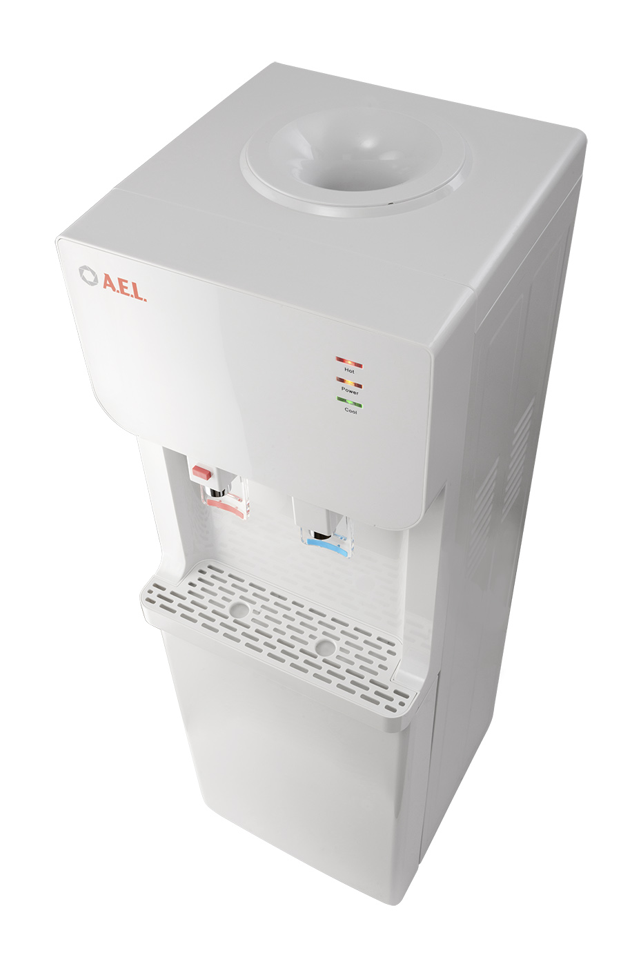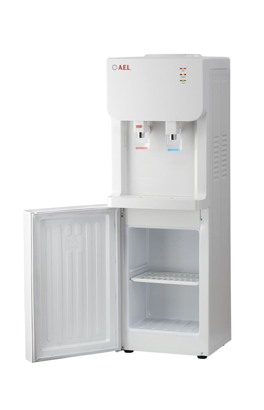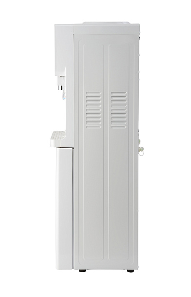 Кулер напольный с электронным охлаждением и шкафчиком. Кулер с высокой производительностью 700Вт по нагреву, благодаря чему за один час можно получить 7 литров горячей. Охлаждение 65Вт и 0,7 литра холодной воды. Для быстрого и удобного наливания воды в стакан или чашку предусмотрены два крана (холодный и горячий) с механизмом «нажим кружкой». Краны с внутренней резьбой для удобной замены в случае необходимости. Присутствует защита от случайного нажатия на кране горячей воды. Цвет аппарата: белый. Шкафчик для хранения 11л.