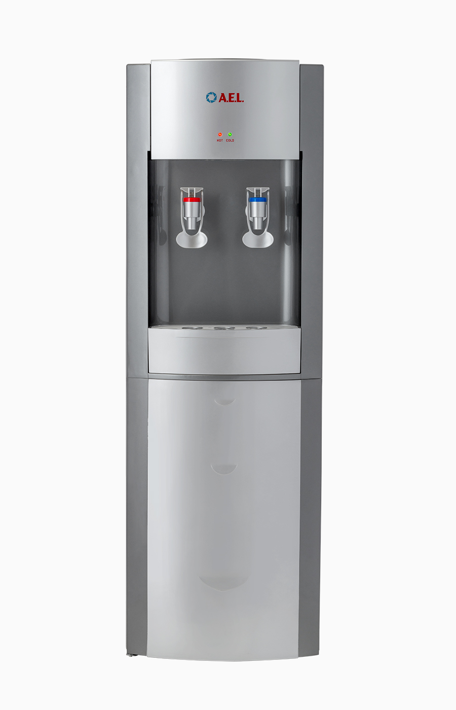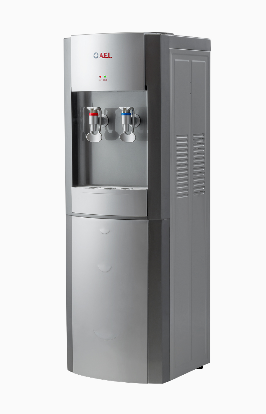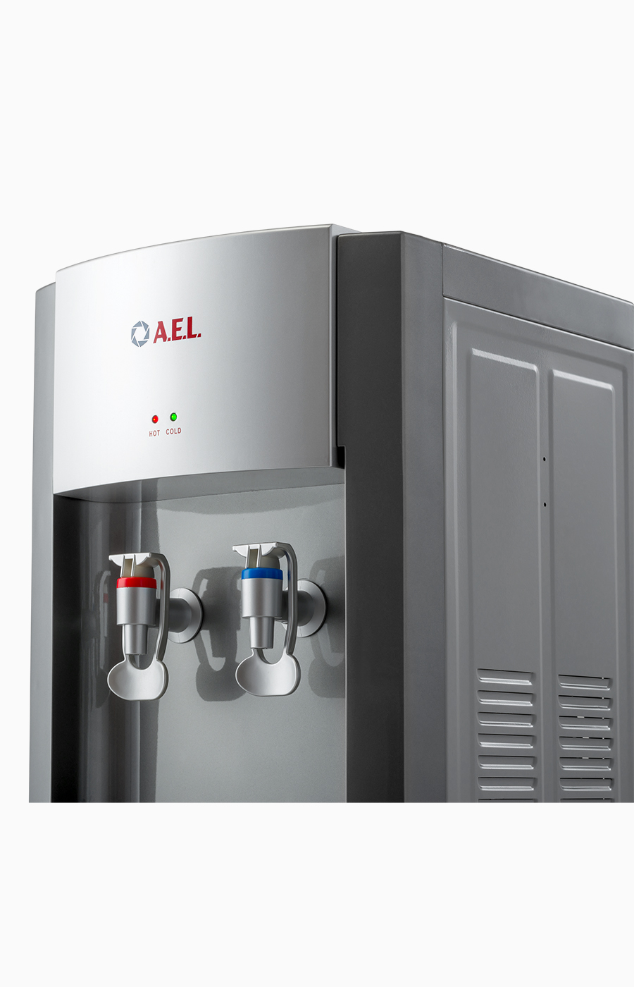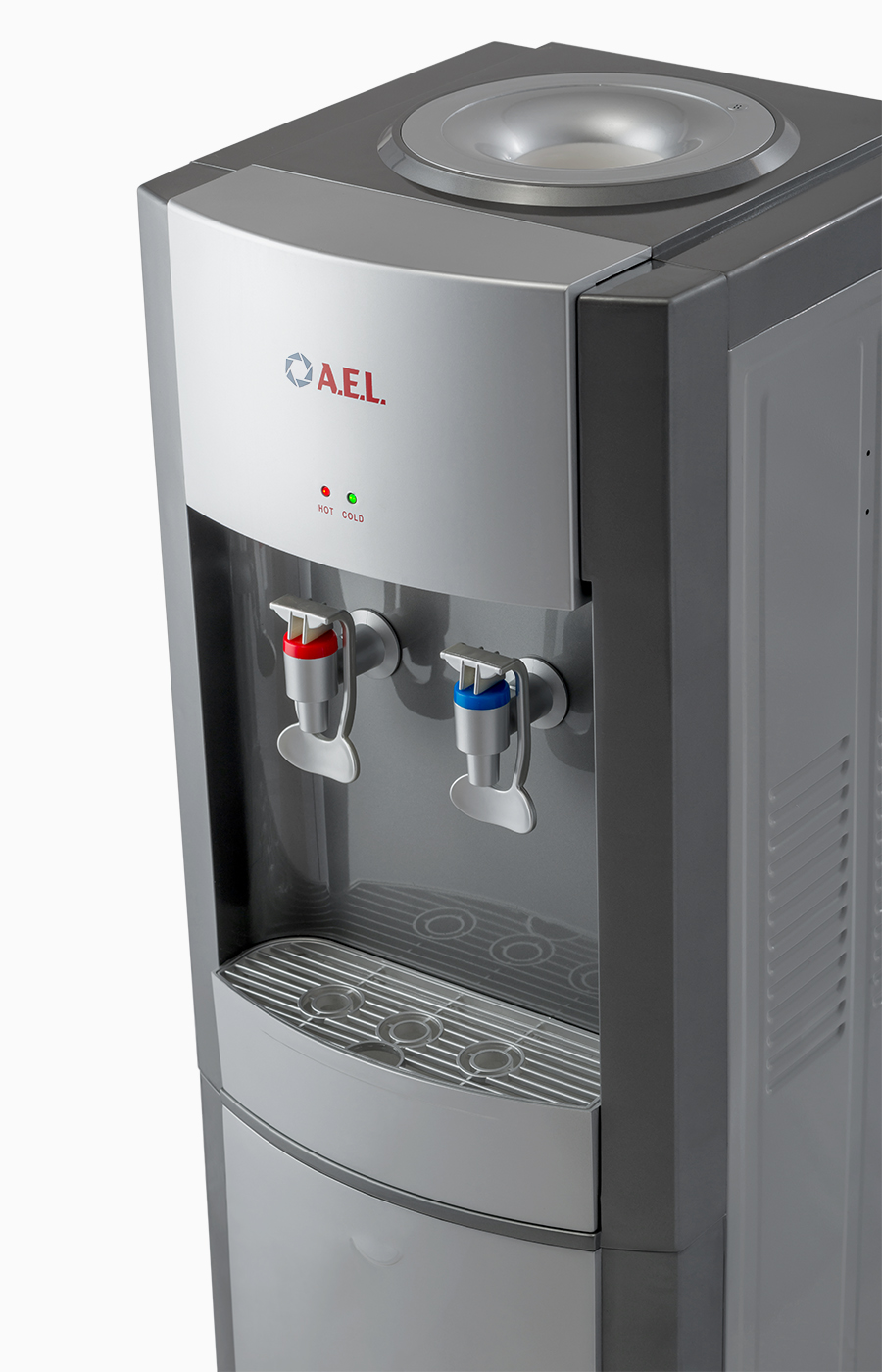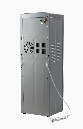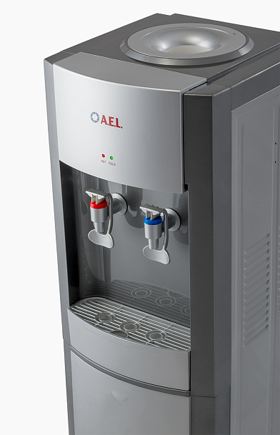 Бюджетный кулер с верхней загрузкой электронного охлаждения. Краники "нажим чашкой" с внутренней резьбой. Цвет: темно-серый с серебряными вставками. Боковые стенки выполнены из металла серебристого цвета. Кулер удобен для офисного использования.