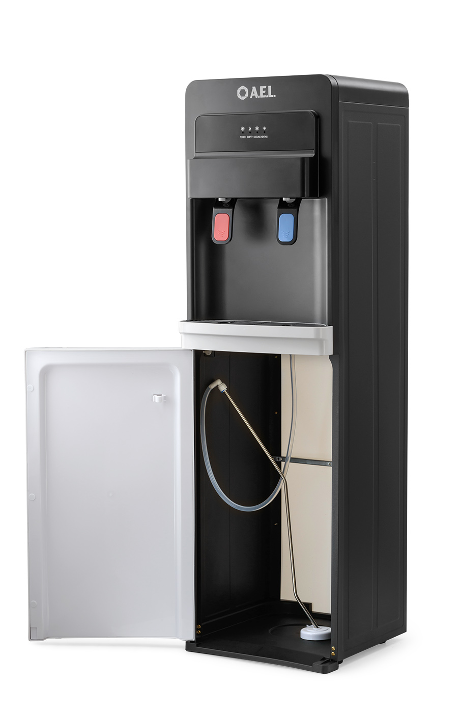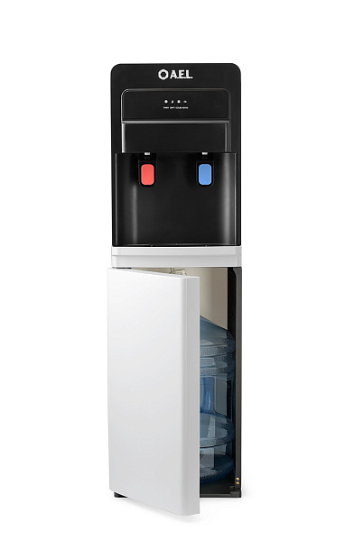 Новинка в ассортименте АЕЛ - кулер с нижней загрузкой бутыли с электронным охлаждением. Цвет: черный с белой вставкой. Модель оснащена двумя краниками нажим кружкой (горячая/холодная). Стильный лаконичный дизайн отлично будет смотреться в офисе и дома. В процессе эксплуатации аппарата в тот момент, когда вода в бутыли закончилась, на панели индикации загорится индикатор наличия воды в бутыли. Это символизирует о том, что необходимо заменить пустую бутыль.