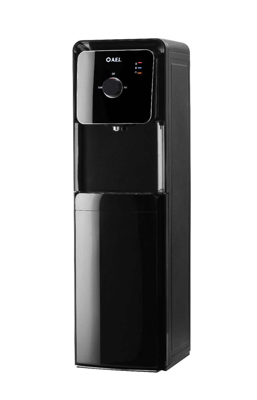 Новинка в ассортименте АЕЛ - напольный кулер с нижней загрузкой бутыли, электронное охлаждение с поворотным краном. Раздача воды горячей и холодной температуры.