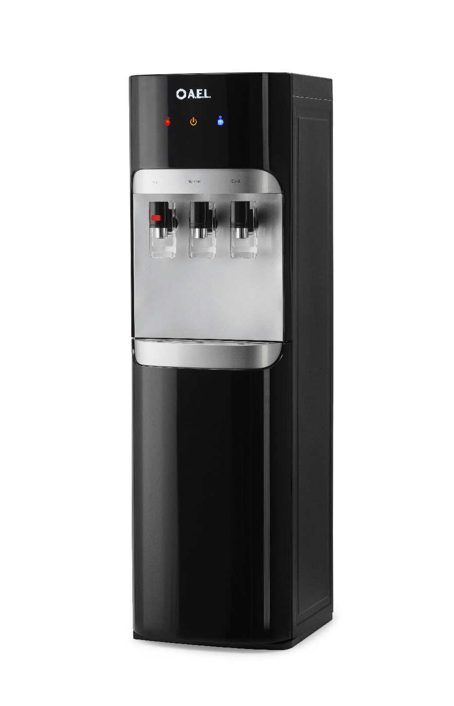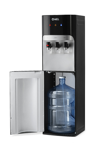 Новинка в ассортименте AEL модель с нижней загрузкой бутыли с электронным охлаждением. Три крана нажим чашкой (горячая, комнатная и холодная вода). Защита от случайного нажатия на кране ГВ, Цвет черный глянец с серебряной вставкой. В процессе эксплуатации аппарата в тот момент, когда вода в бутыли закончилась, будет произведен звуковой сигнал beep. Это символизирует о том, что необходимо заменить пустую бутыль.