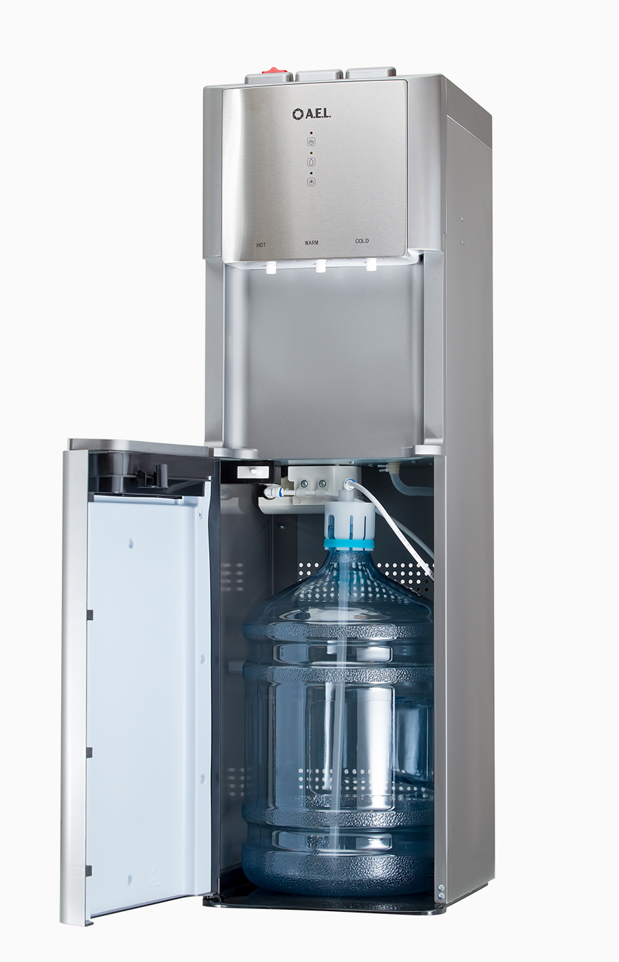 Новинка в ассортименте АЕЛ - кулер с электронным охлаждением серебряного цвета с металлической вставкой. Нижняя загрузка удобна для установки и замены бутыли. Модель оснащена тремя краниками-клавишами (горячая/прохладная/холодная). Клавиша горячей воды с защитой от случайного нажатия. В процессе эксплуатации аппарата в тот момент, когда вода в бутыли закончилась, на панели индикации загорится индикатор наличия воды в бутыли. Это символизирует о том, что необходимо заменить пустую бутыль.