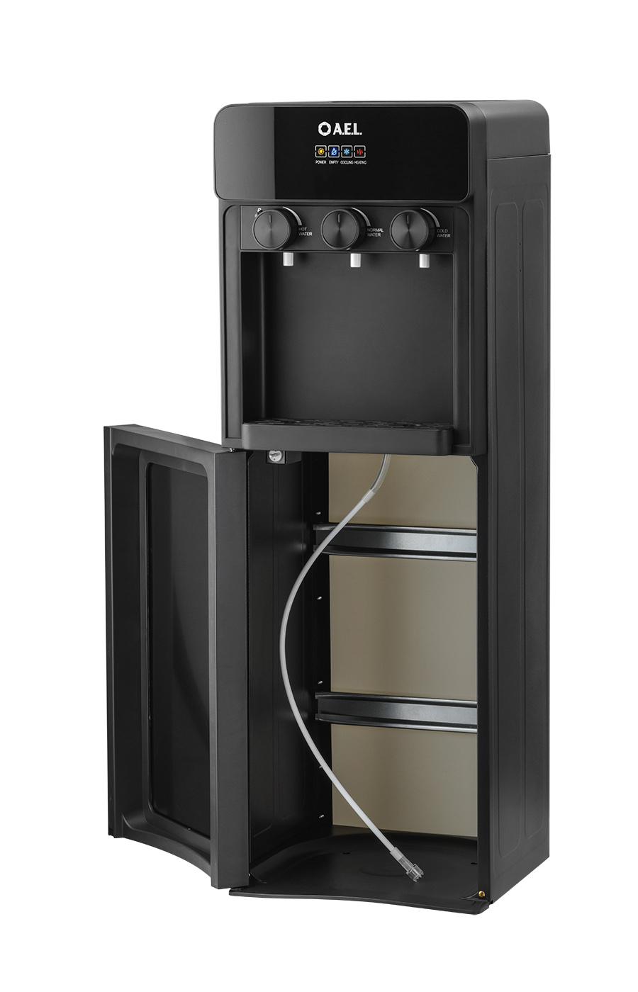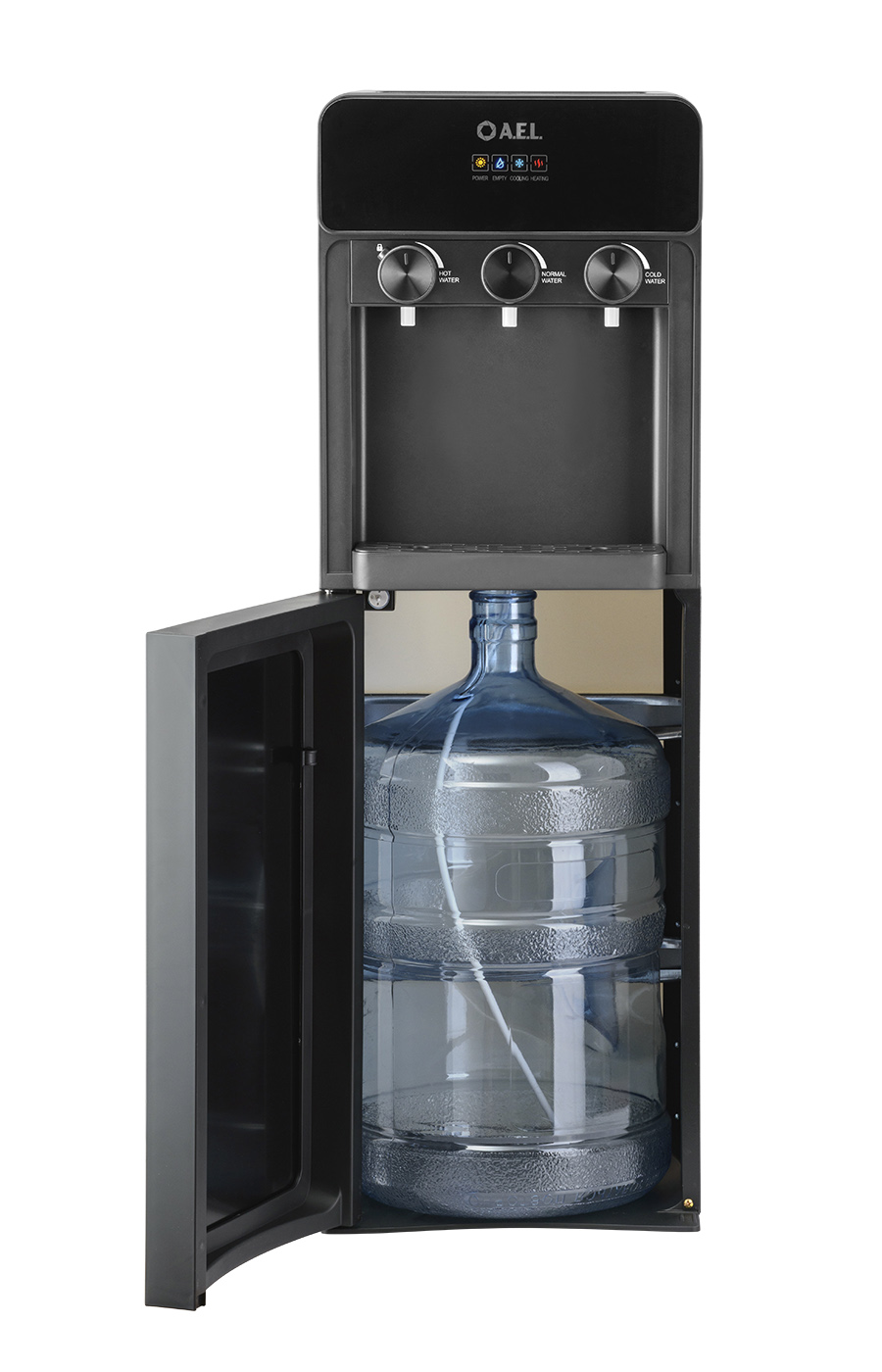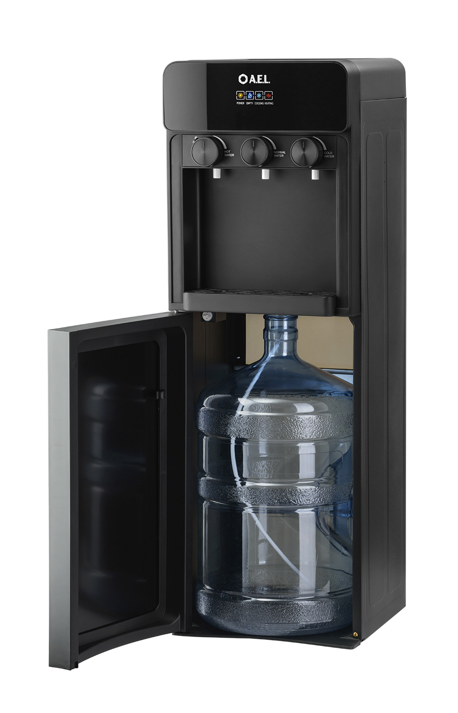 Представляем кулер для воды с нижней загрузкой LD-AEL-825a full black, с электронным охлаждением и поворотными кранами подачи воды. Корпус черного цвета. Три крана подачи воды: горячей, холодной и комнатной температуры. На кране горячей воды располагается кнопка от случайного нажатия. В процессе эксплуатации аппарата в тот момент, когда вода в бутыли закончилась, на панели индикации загорится индикатор наличия воды в бутыли. Это символизирует о том, что необходимо заменить пустую бутыль. Рекомендованы следующие параметры бутыли 19л для данной модели - 270*270*500мм (пример Бутыль 19л. с ручкой (ЯЗН)).
