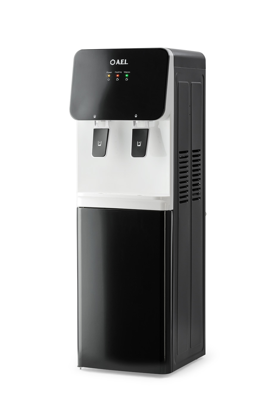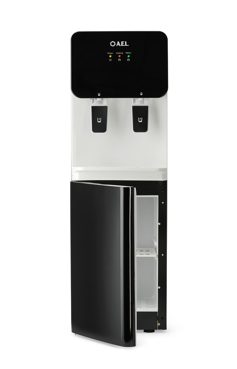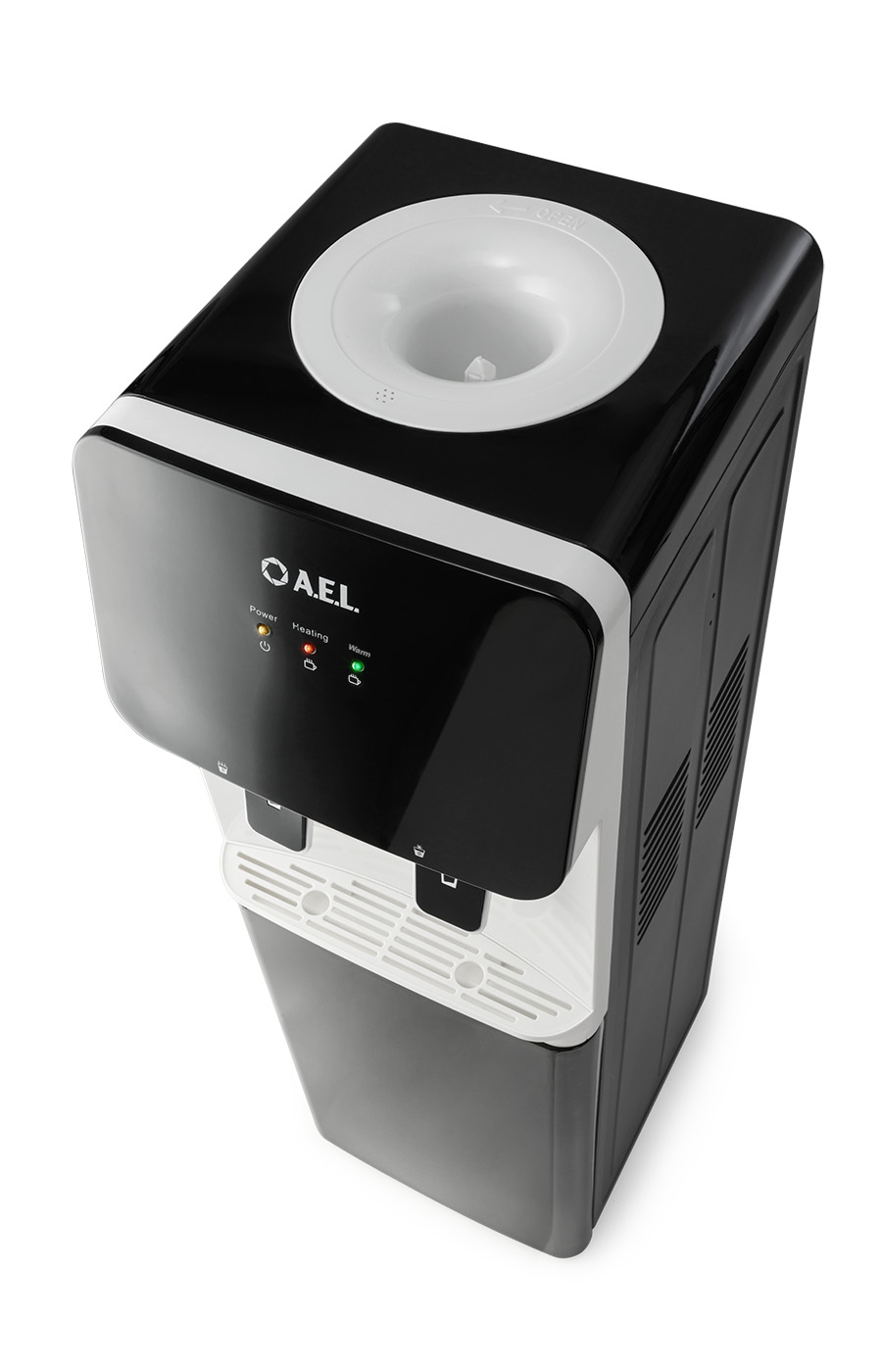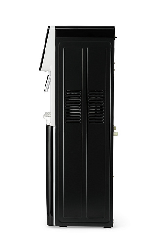 Напольный кулер без охлаждения, нагревом и шкафчиком для продуктов. Гладкая черная лицевая панель, удобные краны "нажим чашкой" и малые габариты этого аппарата эргономично впишутся в Ваш офис. Цвет черный с белой вставкой.