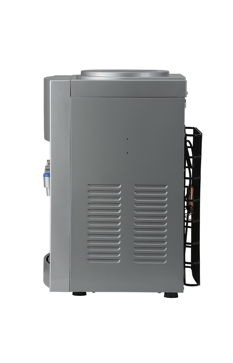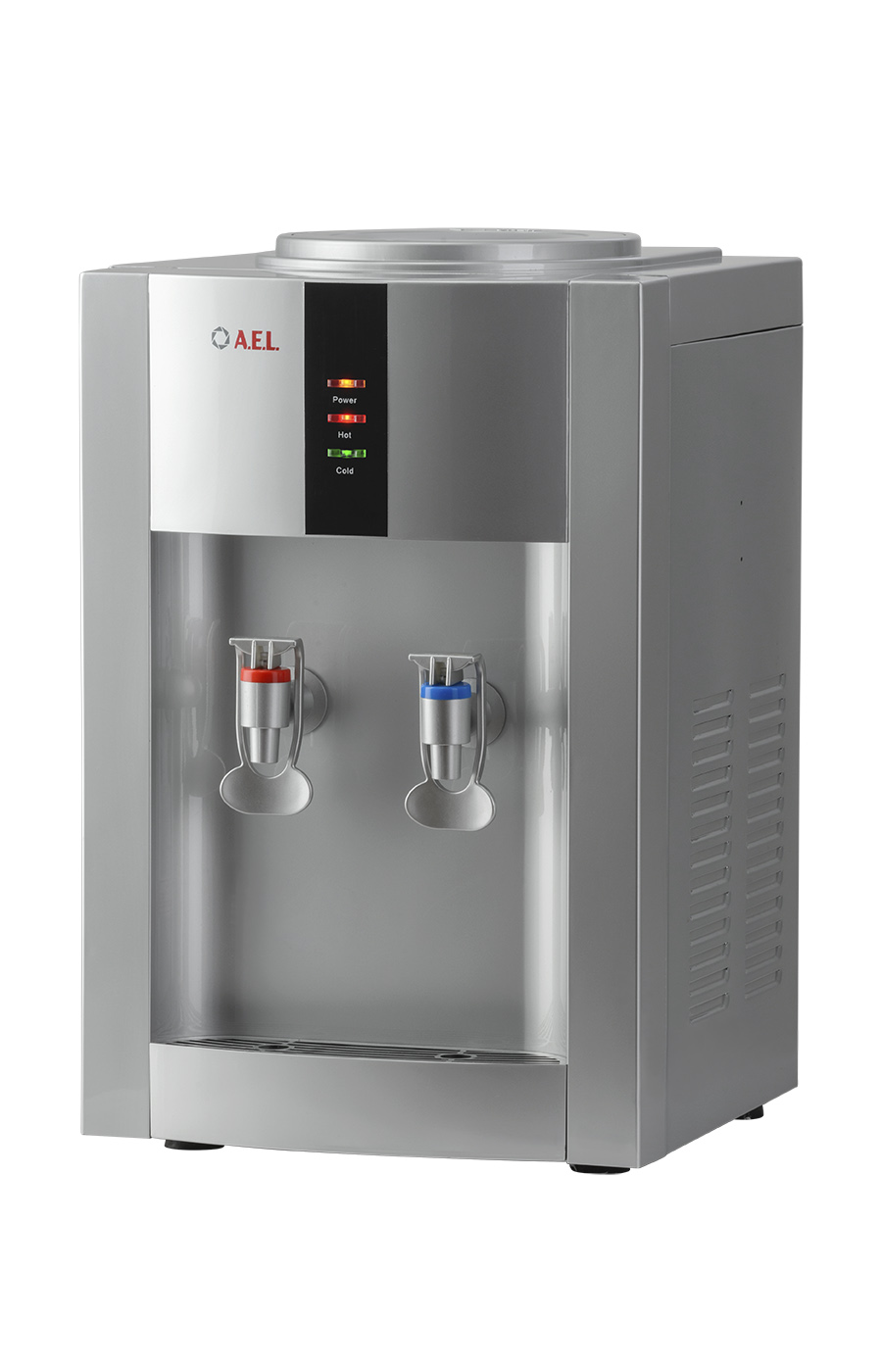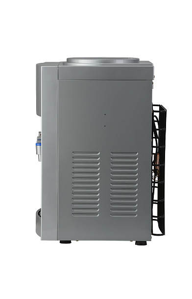 Настольный кулер с компрессорной системой охлаждения серебряного цвета. Отличается высокой производительностью (нагревает до 5 л и охлаждает до 2 л воды в час). Охлаждение и нагрев воды можно отключить с помощью тумблеров на задней панели кулера. Оснащен кранами типа "нажим кружкой с внутренней резьбой». Изготовлен из высококачественного пищевого пластика, а боковые черные стенки сделаны из металла, что позволяет крепить держатель на магните.