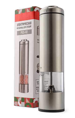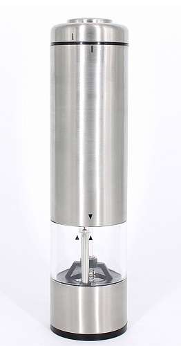 Электрическая мельница предназначена для быстрого и эффективного измельчения перца-горошка и крупной соли. Перерабатывает специи, не сминает их, достигая естественного аромата и особого вкуса. Предусмотрена возможность регулировки степени помола – грубый или тонкий. Контейнер из прозрачного акрила объемом 0,26л, корпус из нержавеющей стали высокого качества, керамические жернова, простое управление и подсветка. Прибор работает с помощью 4х батареек AA. 6В, 3Вт.