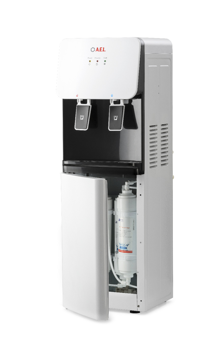 Напольный пурифайер c электронным охлаждением с 4х UF-системой очистки. Модель комплектована защитой от протечки, удобными кранами нажим чашкой: горячая/холодная. Цвет: белый корпус с черной вставкой. Компоектация: кран врезки + трубка 1/4 - 3 метра, фильтры I типа, 12", мануал. Для того чтобы пурифайер производил воду постоянного высокого качества и вкуса, необходимо регулярно производить замену фильтров. Для замены подойдут фильтры Aquaalliance 12 размера U типa.